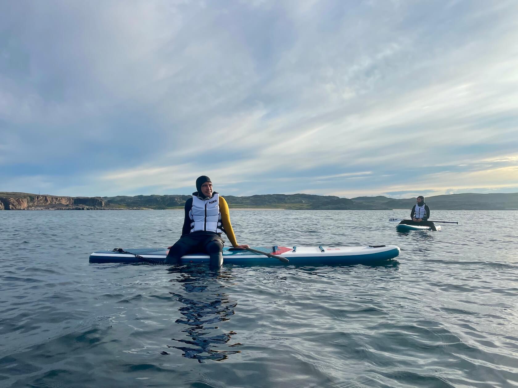 САП серфинг на акваториях Баренцева моря вблизи острова острова Большой Олений, на котором расположен маяк Русский.